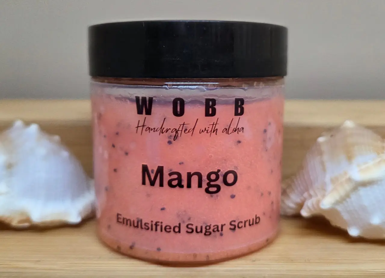 This thick scrub goes a long way using just a little. The Sugar and Blue Poppy Seeds act as exfoliants to remove the dead skin cells from the skin so the oils and butter can them moisturize your skin. Enjoy!